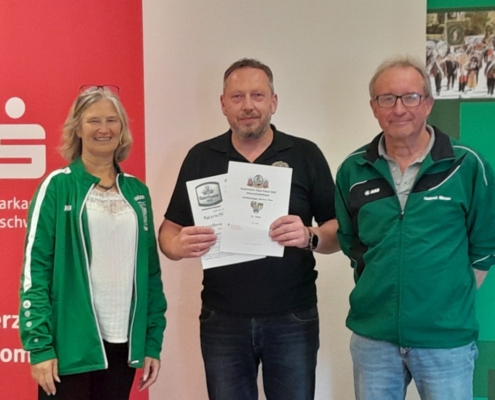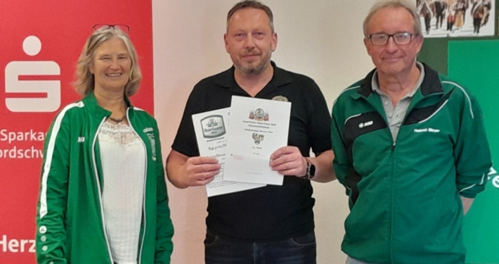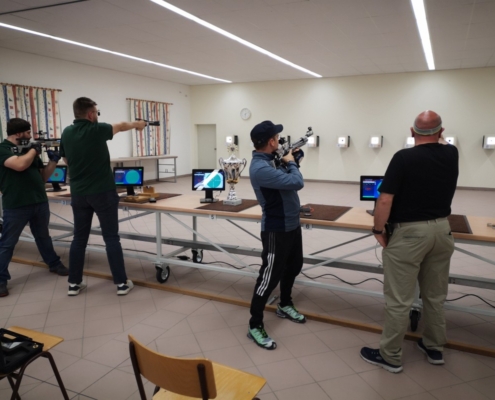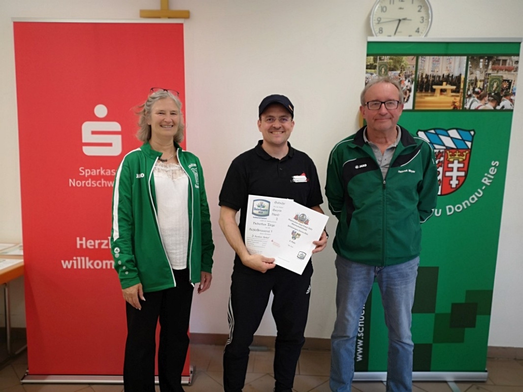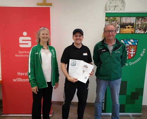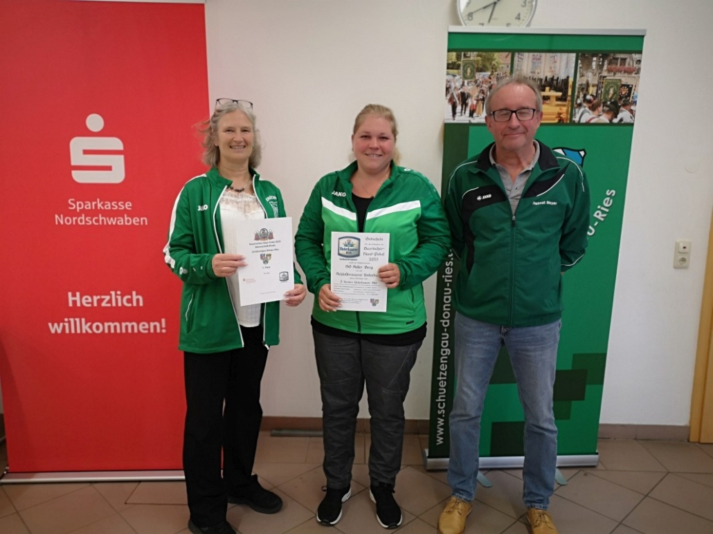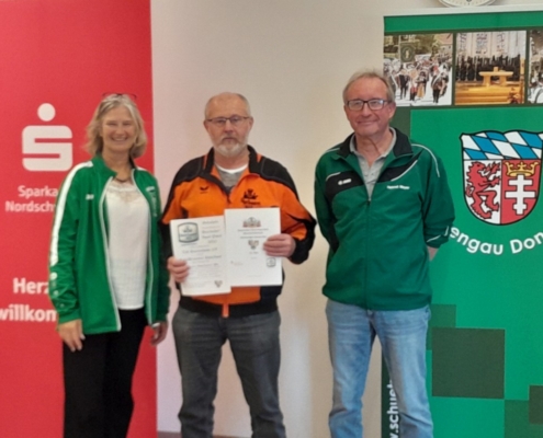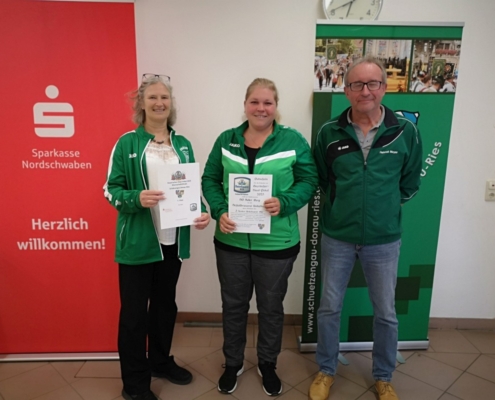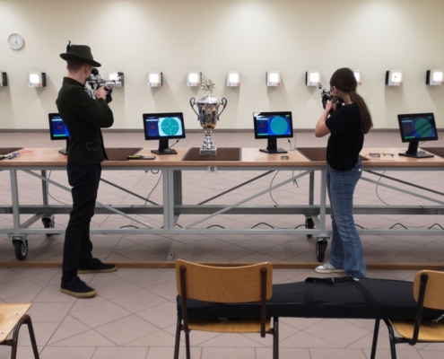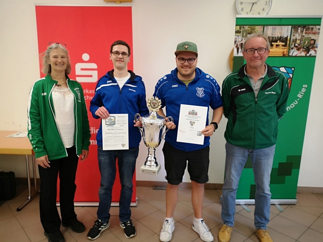 Mit den Finalwettkämpfen auf der elektronischen Schießanlage der VSG 1900 Asbach-Bäumenheim wurde die Bayrischer-Hiasl-Pokal-Saison 2024 im Schützengau Donau-Ries erfolgreich abgeschlossen. Erstmals in der 24-jährigen Geschichte des Bayrischer-Hiasl-Pokals im Schützengau Donau-Ries konnten die Lechschützen Ellgau den Wanderpokal gewinnen. Die beiden Ellgauer Luftgewehrschützinnen Kristina Büchele und Rebecca Münzinger gewannen den Endkampf im Modus Treffer/Fehler alle drei Wettkämpfe. Im Viertelfinale mit 12:10 Treffern gegen Brachstadt, das Halbfinale mit 14:12 Treffern gegen Monheim und schließlich noch den Finalwettkampf mit ebenfalls 14:12 Treffern gegen Pokalverteidiger Riedlingen. Auch beim Mannschaftsvorkampf, bei dem jeder der zwölf Finalvereine acht Schützen stellen konnte, von denen die besten sechs in die Mannschaftswertung kamen triumphierte Ellgau. Die Lechschützen siegten schon dort mit 335,4 Punkten, vor Eggelstetten (387,3) und Monheim (391,9). Die acht besten Mannschaften dieses Mannschaftsvorkampfes qualifizierten sich für die Finalwettkämpfe im Modus Treffer/Fehler. Für 2024 wurden die beiden Vorrunden und der Finaltag ohne Probleme ausgetragen. Insgesamt nahmen an der Bayrischer-Hiasl-Pokal-Saison 2024 924 Schützinnen und Schützen aus 42 Gauvereinen teil, in der Runde eins waren es 496 Teilnehmer, in der Runde zwei 334 und am Endkampftag bei der VSG Asbach-Bäumenheim nochmals 94 Starter. In Asbach-Bäumenheim starteten die zwölf Siegermannschaften der zweiten Runde zum Mannschaftsendkampf. Die besten acht Mannschaften qualifizierten sich dann noch für das Mannschaftsfinale im Modus Treffer/Fehler. Nach vier Stunden stand hier die Mannschafts-Rangliste fest. Nach der Siegerehrung der Plätze neun bis zwölf, begannen die Viertelfinals in Modus Treffer/Fehler. Es traten hier immer zwei Schießende für ihren Verein an. Geschossen wurden dabei zwei Fünf-Schuss-Serien. Für eine Fünf-Schuss-Serie gibt es eine maximale Schießzeit von 120 Sekunden. Als Treffer gilt ein erzielter Schusswert von 8,8 und höher, alles darunter wird als Fehler gewertet. Ihre Viertelfinals gewannen die Mannschaften aus Ellgau, Monheim, Riedlingen und Druisheim teils mit klaren Vorsprüngen. In den Halbfinals und den Wettkämpfen und Platz drei und eins wurde es dann schon deutlich spannender. Das erste Halbfinale gewannen die beiden Ellgauerinnen Rebecca Münzinger (9) und Kristina Büchele (5) mit 14:12 Treffern gegen die beiden Monheimer Thomas Templer (7) und Niklas Nigel (5). Im zweiten Halbfinale gewannen die beiden Riedlinger Marius Hanenberg (9) und Max Hofer (7) mit 16:12 Treffern klar gegen die beiden Druisheimer Tatjana Merkl und Peter Gaugenrieder, die es beide auf sechs Treffer brachten. Somit standen die Finalpaarung und die Paarung um Platz drei fest. Den Wettkampf um Platz drei gewann Druisheim (13:12) mit einem Treffer Vorsprung gegen Monheim. Für Druisheim kam Tatjana Merkl auf sieben Treffer, Peter Gaugenrieder steuerte noch sechs Treffer bei, für Monheim kam Thomas Templer auf sieben Treffer, Niklas Nigel traf fünf der möglichen 10 Treffer. Im Finalwettkampf siegte schließlich Ellgau mit 14:12 Treffern gegen Titelverteidiger Riedlingen. Für Ellgau kam Kristina Büchele auf acht Treffer und Rebecca Münzinger steuerte nochmals sechs Treffer bei. Für Riedlingen kam Marius Hanenberg auf sieben Treffer und Max Hofer auf fünf Treffer. Somit sicherten Büchele und Münzinger den Lechschützen Ellgau den ersten Platz und für ein Jahr den Wanderpokal. Bei der abschließenden Siegerehrung bedankten sich Gauschützenmeisterin Heike Wildfeuer-Fick, der Vorstand der VSG Asbach-Bäumenheim Mathias Uhl und Gausportleiter Franz Müller bei allen Teilnehmern für den sportlich fairen Wettkampf, bei allen Helfern für ihr Engagement im Ehrenamt, sowie bei der Schlossbrauerei Unterbaar, der Sparkasse Donauwörth und dem Schützengau Donau-Ries selbst, für die zur Verfügungstellung der Geld- und Sachpreise. Nach der Verteilung der Geld- und Sachpreise, sowie der Übergabe des Wanderpokals, ging ein gelungener Wettkampftag zu ende. (fmü)