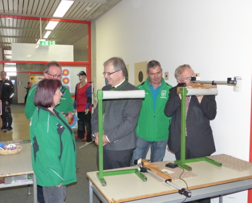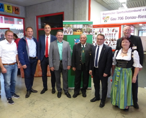 Zu einem Plausch am Schützenstand trafen sich auf Einladung der 1. Gauschützenmeisterin Rita Schnell nicht „nur“ Schützen sondern auch Politiker die am Politischen Frühschoppen bei der Donauwörther Zeitung teilgenommen hatten sowie auch Direktor und Sponsor der RaiBa Raiffeisen Volksbank Michael Kruck mit Kollege Franz Miller.