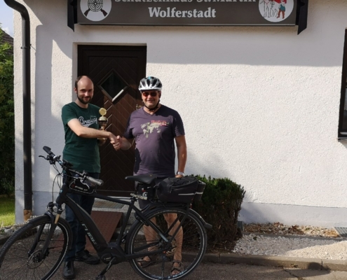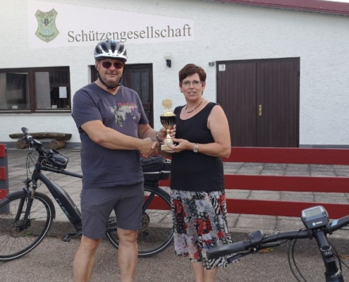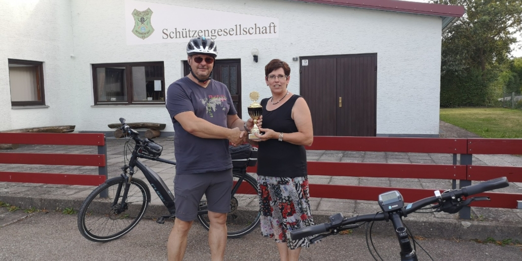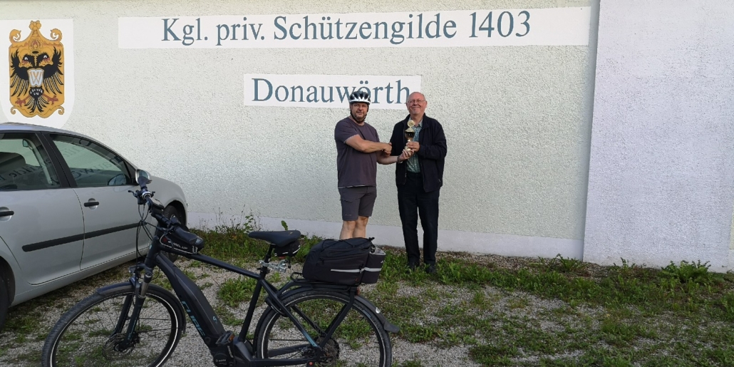 Nachdem Rundenwettkampfleiter Helmut Vogt an der Siegerehrung des RWK 2018/2019 in Wemding angekündigt hatte, das Fehlen der Siegerpokale auf seine Kappe zu nehmen und die Pokale im Gaugebiet per Fahrrad auszufahren, ließ er auf seine Worte auch Taten folgen: